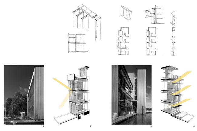 The building responds to the unique site conditions in each cardinal direction. Different strategies were utilized to control solar heat gain, improve the energy performance of the building, and introduce daylight and provide views.