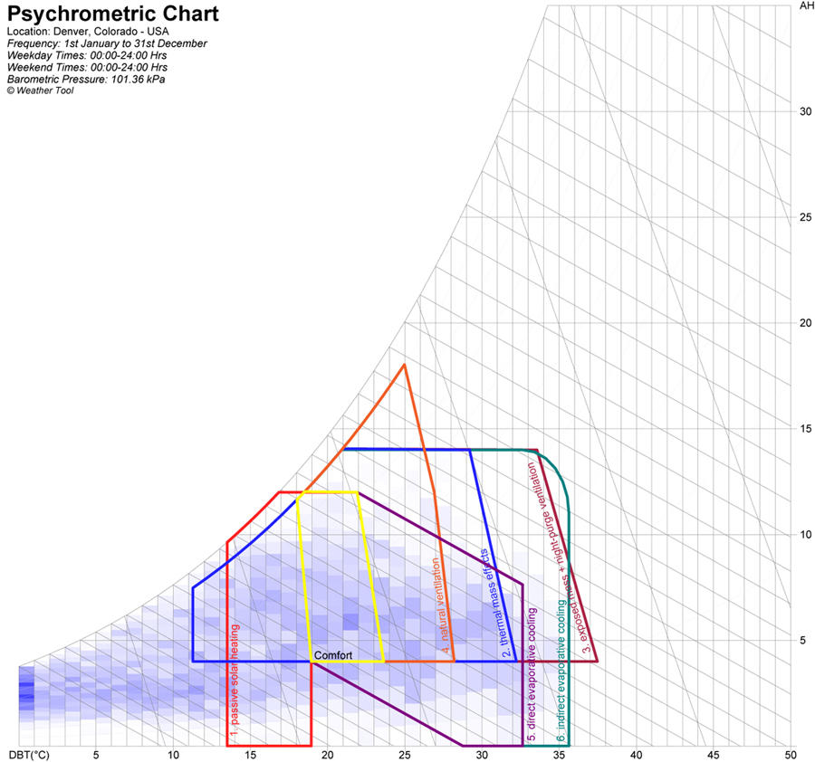 The solar geometry of the site dictated the shading and daylighting strategies. The seasonal and diurnal temperature changes of the climate influence the integration of thermal mass and night-flush capability in the building interior and in the thermal labyrinth in the crawlspace. The geometry of the building was studied in a wind tunnel to fine-tune the effectiveness of the operable windows and cross ventilation, as well as pedestrian comfort in the exterior courtyards.