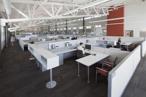 The workplace is designed with modular components, such as a raised floor, demountable walls, and modular furniture solutions. These systems make the workplace highly adaptable over time. These systems also created a very efficient space plan that allows the owner to add more occupants to the building with less overall building area.