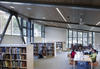 The Hillside Learning Complex includes three buildings—a library and media center, a student center, and a classroom building with administrative offices, seven classrooms, and an R&D lab—which are organized around a central plaza. The classroom building serves only the fifth through eighth grades. The student center serves lunch to the same group. The library serves the entire school.