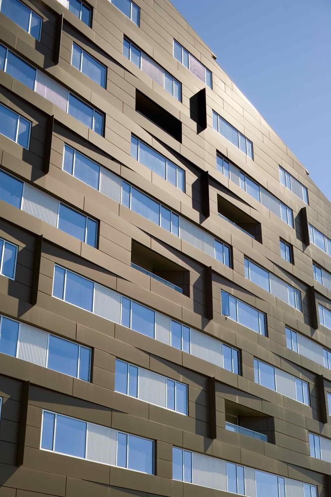 Most residential units are wide, open spaces with wall-to-wall ribbon windows or, in some cases, floor-to-ceiling glazed curtainwalls. Daylight is abundant, and operable windows were cleverly inserted into the design, adding to the rhythm of the exterior facades.