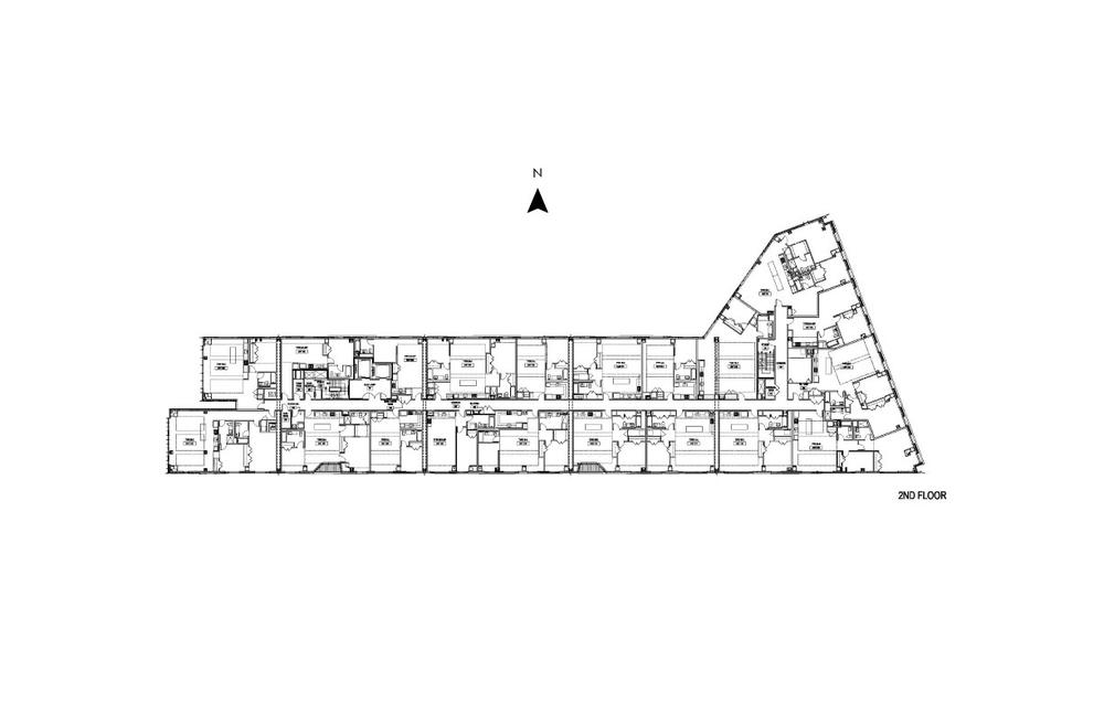 The staggered truss structural system chosen for the Macallen Building is efficient not only in its use of steel but also in its use of space, allowing for higher ceilings and increased open-plan area without the interruption of columns. These large open spaces can be adapted for countless uses over the lifetime of the building. For example, bedroom units can be combined to create three bedroom units if needed. The building could also function as office space or as a community college, with classrooms replacing living areas. An accommodating structural system is the first step to long-term adaptive reuse.
