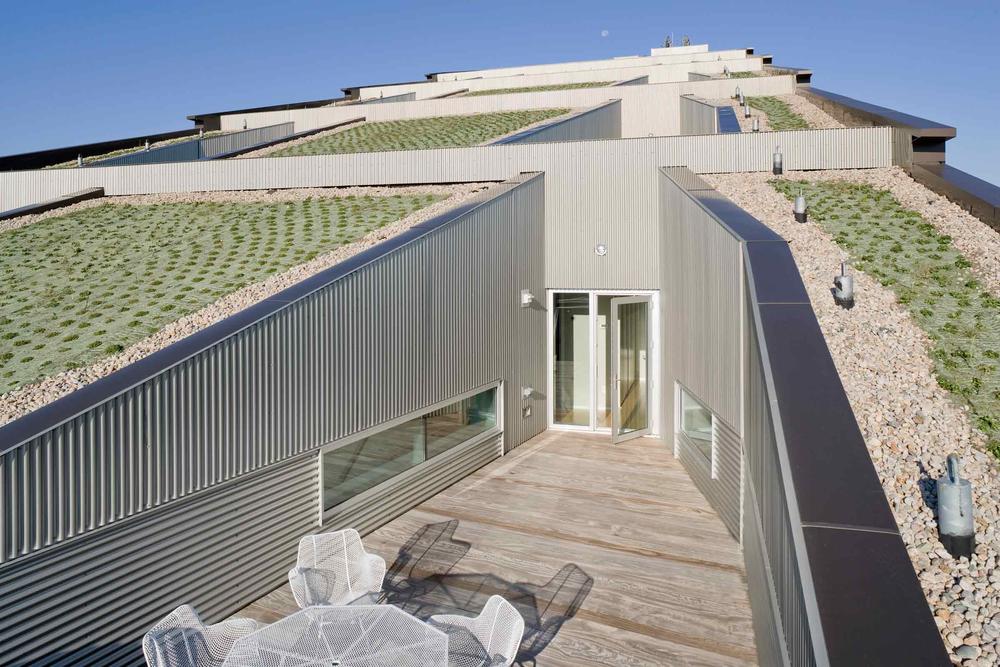 This LEED Gold project has a sloped green roof that controls stormwater drainage, filters pollutants and carbon dioxide out of the air, reduces heating and cooling loads, reduces the project's contribution to the urban heat-island effect, and provides an ecosystem for wildlife. A 20,000-ft2 outdoor terrace incorporated into the building provides similar benefits as the green roof. In addition, a covered garage was integrated into the building to reduce overall square footage and contribution to the urban heat-island effect and stormwater runoff.
