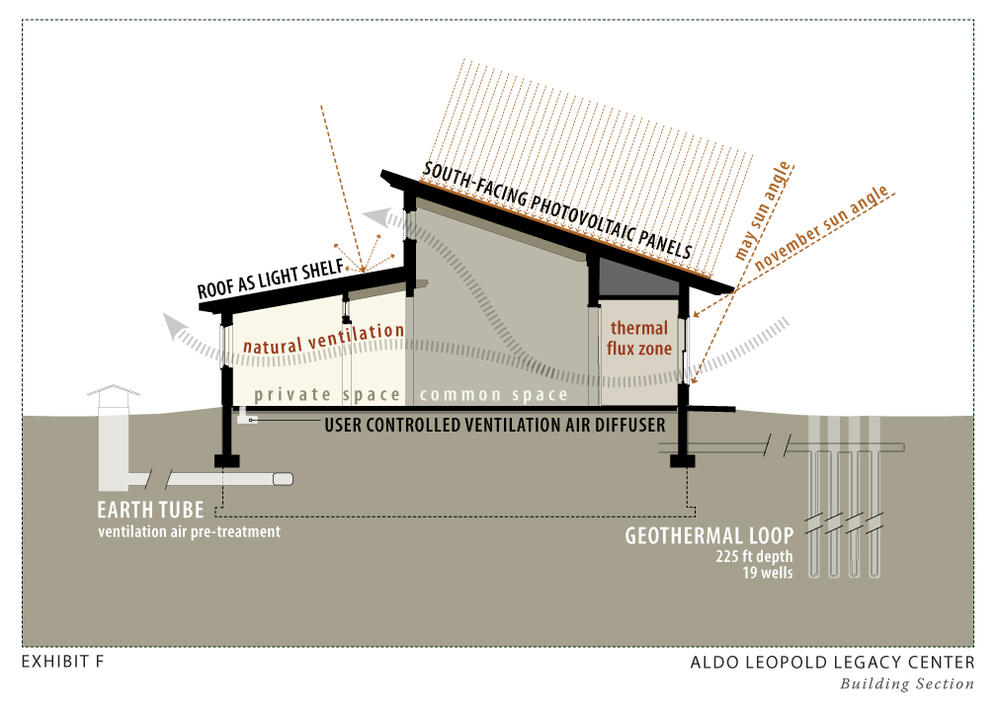 The goal for this project was to demonstrate how human activity, the built environment, and the natural world are intertwined in a larger cycle of energy and life. Perhaps the most lasting achievement of the Legacy Center will be its strict adherence to a holistic design process consistent with Leopold's understanding of ecological systems, a process that offers the promise of shared benefit for both human inhabitants and the land.