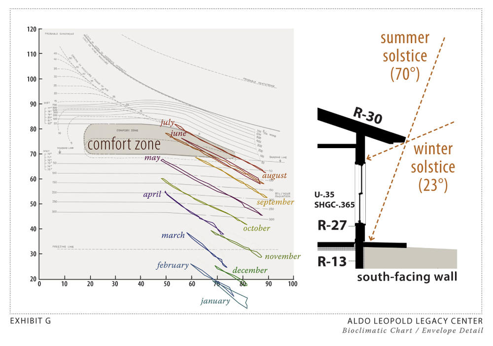 During the course of this project, the design team was often asked about the payback period for green features. Economic calculations are necessary for any construction project, but from the outset the Foundation defined payback broadly. The Foundation wanted to take full responsibility for the environmental as well as the economic costs of construction. This distinction cuts to the essence of Leopold’s Land Ethic. Leopold argued that purely economic motives, as they are commonly understood in modern life, were not sufficient to preserve the long-term health and stability of the biotic community. He wrote that “a system of conservation based solely on economic self-interest is hopelessly lopsided. It tends to ignore, and thus eventually eliminate, many elements in the land community that lack commercial value, but that are essential to its healthy functioning.”