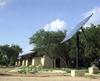 A wetlands wastewater system just south of the building treats the building waste and is also used for demonstrations. The public restroom uses a composting toilet.