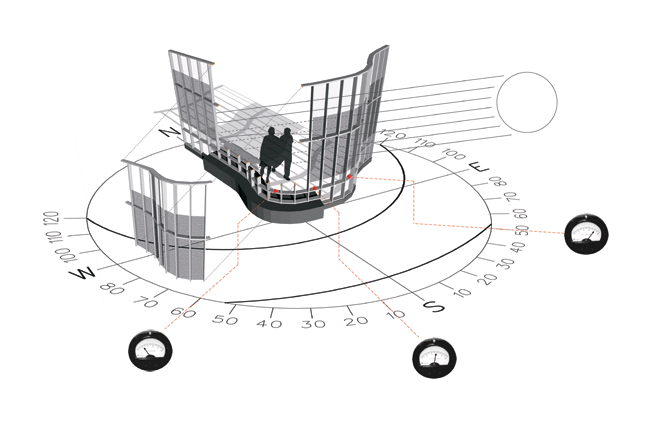 In the design phase the team identified a potential opportunity for using photovoltaic panels to produce electricity onsite. A series of inquiries led to a grant program through Seattle City Light’s Green Power Program and to a new product manufactured by Schott Solar in Germany. Understanding that eligibility for a grant would be predicated on educational opportunities, the team created a concept of a high-tech sun dial that would be clearly visible to the general public. The building's location and function lent themselves to the concept.