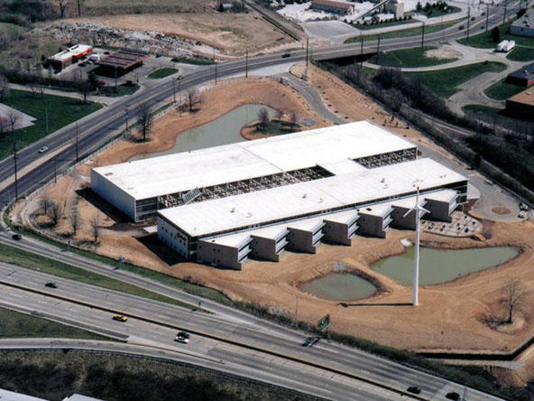 The project is situated among office and warehouse facilities alongside an interstate highway. The 13.6-acre site originally had 9.0 acres of impervious surface, including 3.7 acres under roof.