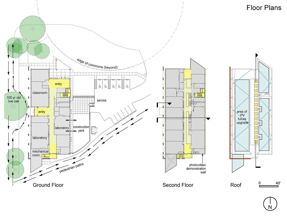 Large-scale, open, linear accessibility was "mapped" through all major classroom spaces in such a manner as to provide nondisruptive servicing and maximum flexibility for future retrofit. The building was also designed through material selection, assembly, and detailing to facilitate disassembly.