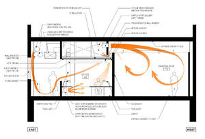 Minimal heating is provided to the “active” spaces, including the shop and studio spaces where people are doing physical work, predominantly standing at benches or large equipment. The hotshop and flameworking spaces are dominated by excessive heat, which is addressed through natural ventilation. The hotshop can be thought of as the return air engine for a large portion of the building.