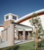 The building plan responds to the community’s desire to have a library that reflects the rancho tradition of the region. It is organized around a central interior courtyard that opens to the landscaped berms at the north of the site. The main reading room stretches along an east-west axis and defines the southern boundary of the site, providing views of the park to the south. The solar path was mapped for all operating hours of the year and the building forms protect the glazing from direct radiation during nearly all of the year to control glare and heat gain. Prevailing winds are directed into the public spaces of the library after being mediated by the cooling tower and the interior courtyard. The arched forms of the primary building elements create pressure differentials on either side of the ventilated spaces to facilitate cross ventilation even during periods with little wind.
