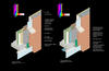 The design of the exterior envelope was one of the most complex analyses. The design intention of weaving the photovoltaics through a brick-and-glass exterior wall to achieve a full integration, while optimizing traditional brick-and-block wall performance, touched on many issues. The final wall design required input from product manufacturers (especially the photovoltaics manufacturer), wind-tunnel tests to set air-infiltration rates for traditional walls, computer simulations (using DOE-2, THERM and CONTAM) to test alternatives, and contractors to assess electrical coordination issues and overall wall constructability to reconfigure the typical section.
