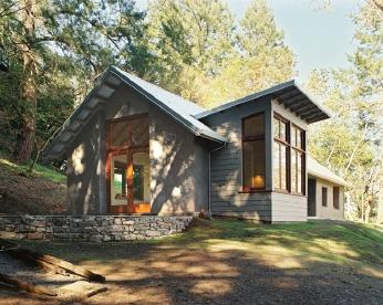 This modest California retreat evokes the spirit of local vernacular buildings and was designed to take maximum advantage of the site and climate to make the house comfortable while minimizing energy use and environmental impacts.