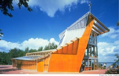 This project was conceived as an amenity to EXPO 2000 visitors to the rural region of the Steinhude Sea, north of Hannover, Germany. The theme for EXPO 2000, "Man, Nature, Environment," led to the goal of an artistically intriguing structure that is fully self-sustaining with minimal impact on the surrounding ecosystem.