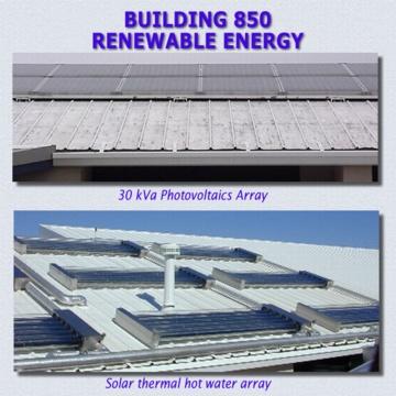 Building 850 is approximately 55% more efficient than California's 1995 Title 24 Energy Efficiency Standards. Energy efficiency was achieved through optimization of the building envelope, minimization of internal loads, careful selection of HVAC components, and innovative use of on-site power generation from renewable sources. A 30 kW photovoltaic array supplies 68% of the total annual energy cost for the building.