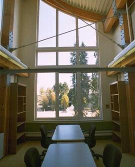 An inventory of the trees was undertaken with this project. Existing trees were retained, in part, for their capacity to remove carbon dioxide from the air and for the shade they provide on the west elevation. Development on the site was designed to preserve the existing forest ecosystems. Tree preservation and pruning issues were written into the specifications.