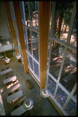 The site for the C. K. Choi Building had previously been a parking lot; it borders an existing forest of coniferous trees over 100 feet high (30 m).