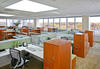 The design provides for openness to the outside environment and openness for communications inside. There are few doors or walls and lots of amenities to promote interaction among employees.