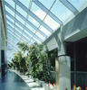 Daylighting is used not only for the interior "street," but also for the factory area. Natural lighting is plentiful from skylights and roof monitors; automatic sensors turn off unnecessary artificial illumination. Production areas have huge skylights.
