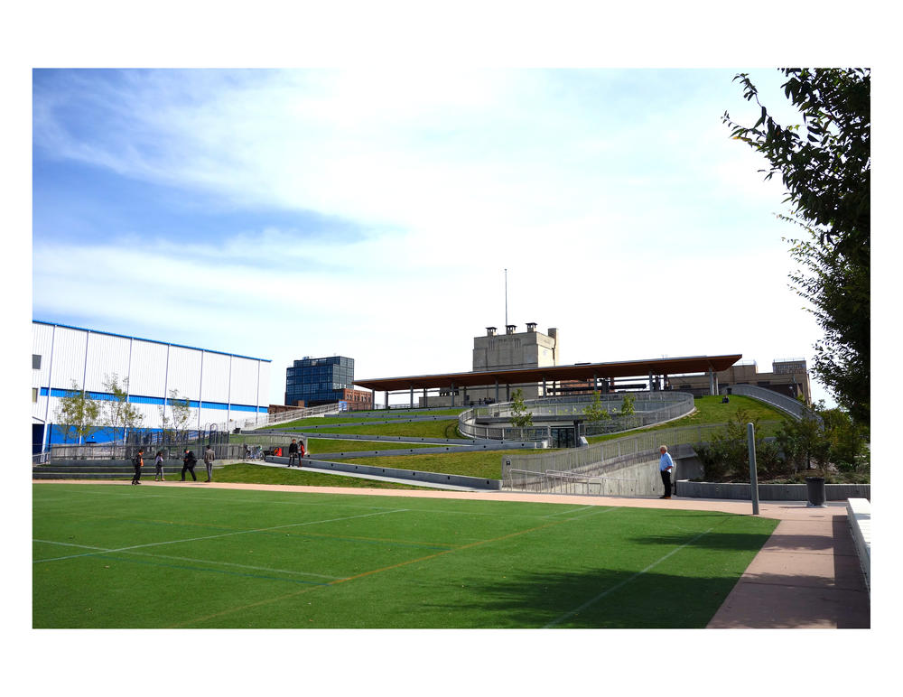 The Bushwick Inlet Park transforms the Brooklyn waterfront from a brownfield industrial strip into a public park. Located in the Williamsburg section of Brooklyn, the design is the first step of an ambitious waterfront redevelopment along the East River. The design team has integrated a program of athletic fields, community facility and a NYC Park maintenance and operation facility into a 6.2-acre park.
