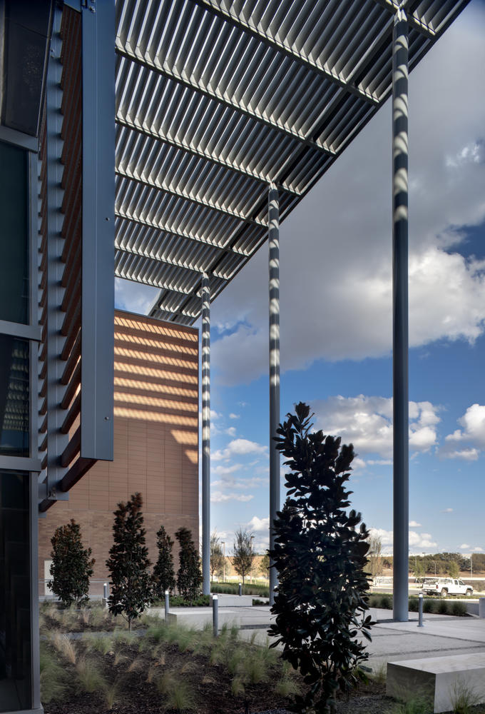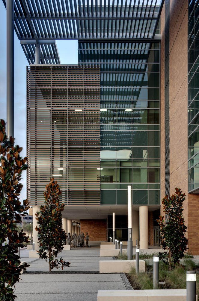 This Veterans Affairs project exhibits a strong sensibility to sustainable practice throughout its high-intensity program, comprised of in-patient beds, a national burn center and a surgical research center. The site location is dictated by the presence of a current medical complex in central Texas, which complicates attaining the energy savings that are already difficult to achieve in a major hospital. The architecture, while sympathetic to the existing complex, expands the vocabulary to be inclusive of various shading devices that promote energy savings goals while still allowing for views from and into the hospital. Natural lighting is accepted as a part of the healing process, which is important for occupants of this type of facility. The site planning and landscape complement each other as additional aspects of a healing environment. San Antonio is one of the most challenging climates in the United States for cooling and dehumidification, but this project thoughtfully and efficiently conditions the spaces for optimal comfort.