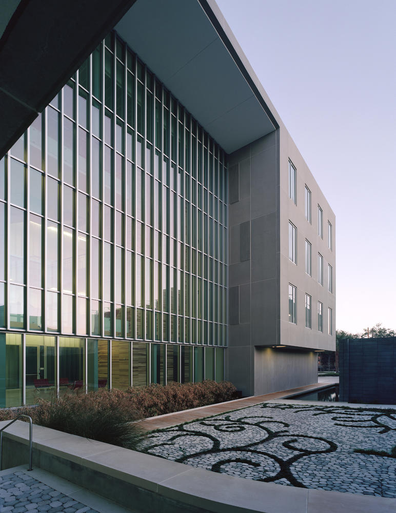The flow of water through the site is handled as a design opportunity rather than a plumbing problem. A ‘working water feature’ captures rainwater and diffuses it to plants and soils on site, evoking the flow of water in the regional ecosystem. The water feature is also fed by the AC condensate (up to 20,000 gallons per week!), which provides all landscape irrigation on site.