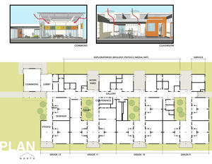 • These framing ideas were expressed in the design through adaptable learning spaces that foster team-teaching; control of natural and artificial lighting and ventilation; public spaces that promote personalization and exhibitions of student work; and an atmosphere of "visible learning" through transparency between spaces.