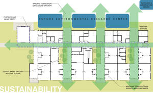 The project is intended to blur the line between indoor and outdoor space and offer opportunities for students and staff to connect to nature. The design is porous and open in character, while being easily managed and maintained by teachers and staff. This design is intended to develop multiple intelligences by offering direct visual access to the outdoors from every learning space, and direct physical access to the outdoors from all project workspaces.