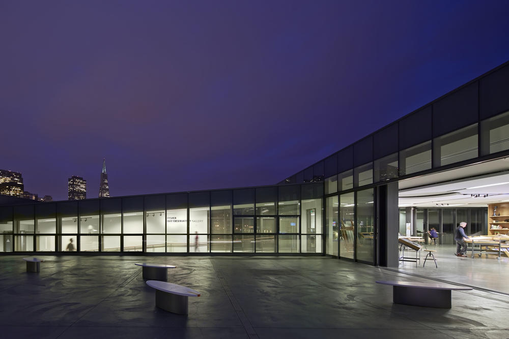 The building hovers above San Francisco Bay and through building and exhibit design makes visitors aware of the local natural environment. An oculus tracks the sun’s seasonal journey and illustrates that pattern for visitors to ponder. Exterior metal cladding is perforated with silhouettes of the many species of phytoplankton living in the waters below. The new piers also provide public access around the entire perimeter of the site for enhanced public access to the Bay, to better see and understand the unique ecosystem.