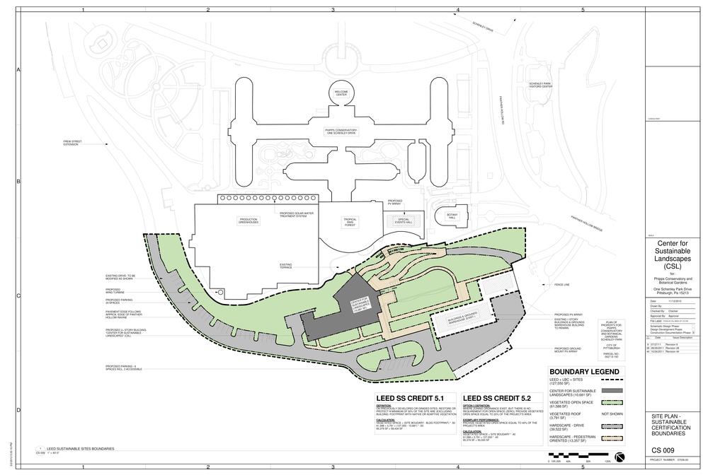 The intent for the design of the CSL was to celebrate place and local talent by including staff and students from neighboring universities and assembling the entire design team from Pittsburgh and Pennsylvania. The project is located within walking distance of the neighborhood of Oakland, connecting it to a network of major educational, medical and cultural institutions. A significant portion of the CSL is now part of the overall Phipps guest experience, accessible to 400,000-plus visitors per year. In the CSL’s early stages, Phipps held planning workshops with local organizations, community groups and institutions. One result of these discussions was a partnership with Carnegie Mellon University and the University of Pittsburgh, who participated in the design and are now conducting original research on building, site, and occupant performance and wellness. The CSL site affords exclusive parking spots for low emitting and fuel efficient vehicles, car pool vehicles, and electric vehicle parking and charging. The site is served by the city’s public transit system, and a University shuttle. Charter buses and school buses are accommodated by a pick-up/drop off stop and waiting-area parking. Phipps is presently exploring programming to incentivize occupants to increase their use of alternate modes of transportation.
