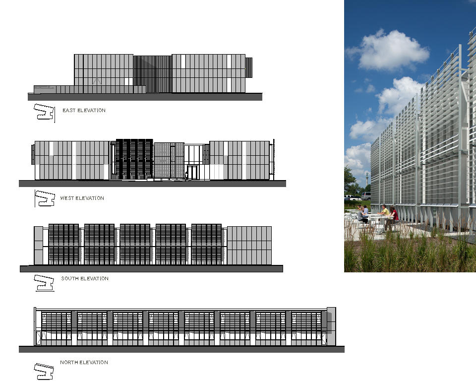 The building is sited with proper east-west orientation. A narrow north-south building configuration provides the most appropriate daylighting and natural ventilation opportunities. West and east elevations are designed only to accept specific views to mitigate excessive heat gain and glare.