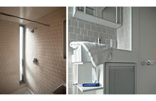 Slit window in shower allows plentiful amounts of natural light into the bathroom. - Photo Credit: Ken McCown