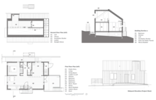Plans, Transverse Section, and West Elevation - Photo Credit: Design Team