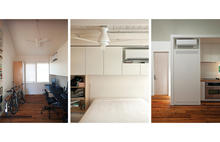 The dormer and skylight are placed so daylight is reflected and diffused. No-VOC paint color is warm white with a punch of red-orange hidden within the swing space to produce a warm glow from reflected light. Low-E glass and translucent blinds provide further control over heat, glare and privacy. Operable windows in each room, ceiling fans, and a ventilation shutter in the loft for stack effect further extend the comfort zone.