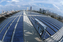 At the 1996 Olympic Games, the Olympic Natatorium—on the campus of the Georgia Institute of Technology—was designed to incorporate an energy-producing solar array into an existing building, showcasing advanced technology to a global audience.