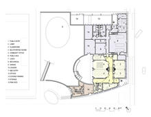 The design incorporates flexibility of use with movable walls to divide the two larger multipurpose rooms into four smaller rooms. Open work spaces allow flexible furniture configurations for future changes in use.