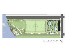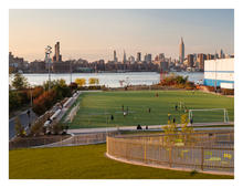 (top) Existing site 2008; (bottom) Project under construction in 2012 - Photo Credit: Kiss + Cathcart, Architects The Greenpoint Williamsburg Waterfront Open Space Master Plan was developed in conjunction with many community groups, to address local concerns about the 2005 upzoning of the neighborhood and resultant increase in density along the waterfront. The park gives the community access to the waterfront, both physically and conceptually as it reinforces the neighborhood’s sense of place and relationship to Manhattan. It also provides park land and recreational opportunities in a neighborhood which had comparatively little open space. The athletic field is one of the most heavily used fields in the city, with soccer games running until 11:00 most nights.
