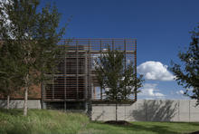 San Antonio can be brutally hot and humid in summer (ASHRAE Climate Zone 2A). The addition has nearly optimal solar orientation: facing south/southeast, it turns away from the hotter western light. The deep overhangs of the umbrella and the terra cotta baguettes allow extensive glazing on selective surfaces to provide views and let in light while controlling heat. The deep indentations of the plan shade the building as the sun moves toward the west.