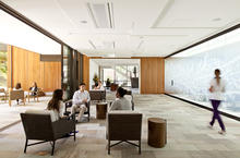 The end result is a porous and transparent building set in a climate-appropriate landscape that reduced site imperviousness to 35 percent. Ninety percent of the plants are native to California and were sourced within 500 miles. The landscape is split down the center of the site into “grassland” and “woodland” ecosystems, reinforcing the building parti while demonstrating the layered landscape of native plant communities. A 25-year old live oak tree in the entry court was grown from an acorn on a Packard family-owned property. The western columbine, which was Lucile Packard’s favorite flower, adorns the sidewalk rain gardens. A green roof visible from the second floor hallways and boardroom is enlivened by a variety of shallow rooting, low growing succulents planted to create a mosaic similar to the bluffs on the California coast.