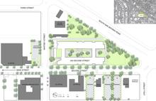 View of green roof from second floor balcony. - Photo Credit: Jeremy BittermannUntil World War II Los Altos was an agricultural town dominated by apricot orchards. By the 21st century, the project site was 97 percent impervious, covered in substandard, mostly unoccupied buildings and asphalt parking lots two blocks from Main Street. The challenge was how to densify and enliven the historic downtown with daytime office workers while improving site ecology in the process.