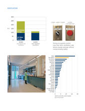 This level of verified performance has been achieved through a combination of an efficient building skin employing strategically deployed glazing with solar controls, highly targeted controls of airflow, temperature, and lighting for virtually every space, and an efficient central plant. It is reinforced at the operations level by fine-grained energy and comfort monitoring. Each ~1000sf lab + support area unit is individually metered, enabling the building owner to track and compare lighting and plug load consumption, identifying best-practice high performers. 73% of site energy use is electricity, with purchase agreements in place for carbon-neutral sources, and the roof has been made solar-ready with attachment footings and conduit in place for future PV.