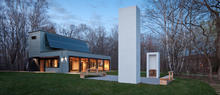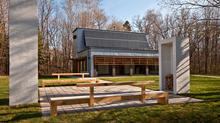 Classroom Building and Outdoor Terrace - Photo Credit: Paul CrosbbyThe nature reserve where this LEED Platinum-certified building is located is a contiguous natural area, 55 acres in size, deeded to the University in the 1950s for educational and recreational use. The site has hiking trails through old-growth hardwoods frequented by the university students as well as the public. We located the building on the hilltop above the pond at the entry to the reserve where there was an existing volleyball court thus avoiding the disturbance of any undeveloped land. Great care was taken to achieve ADA and fire emergency access, turning usual problems into classical processional access.