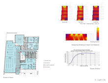 Daylighting Analysis - Photo Credit: Harley Ellis DevereauxGiven the function of a library, proper daylighting was a primary goal. The south-facing front façade received a large window-wall over the full width of the main library space, with a horizontal solar shading system. Skylights face north to minimize glare. At the north wall, a reading nook in the children’s area is generously glazed towards a small garden. Interior glazed walls and clerestory windows allow internal spaces to connect to the natural light. As a result, the library is 97 percent daylit, with views of the outdoors from 95% of occupied spaces.